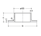 呼び径(mm) | 外径 OD(mm) | 厚さ(mm) | つばの径 G (mm) | 高さ | コーナーR(mm) | |