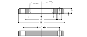 呼び径 | D | t | g | f | P.C.D | ボルト僭方 | h | ボルトの柵び | |